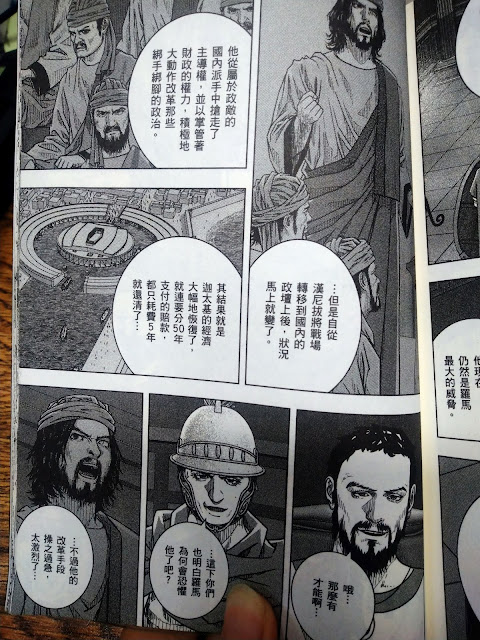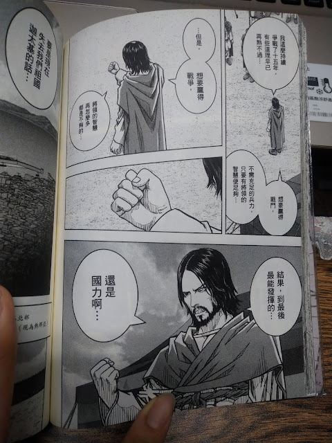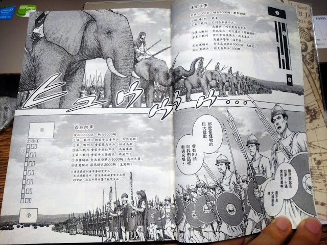 也因此,在這個故事裡面,漢尼拔是怪物、西庇阿是天才.......我個人認為,兩個人都是軍事長才,當一個人因為優秀的軍事能力而聲名大噪的時候,就會有很多穿鑿附會的故事產生,例如,這部漫畫前面所提到的漢尼拔小時候的事情......(我不相信我不相信QQ透過這樣的描繪讓漢尼拔變得像是反派腳色啊啊啊.....